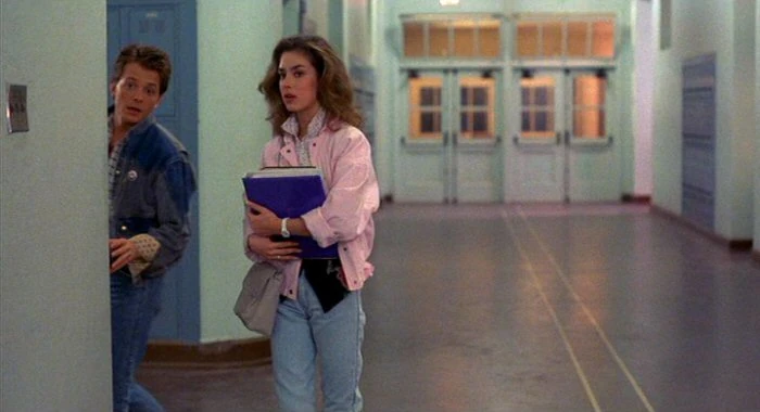 Дженнифер и Марти поздно вечером идут в среднюю школу Хилл- Вэлли.