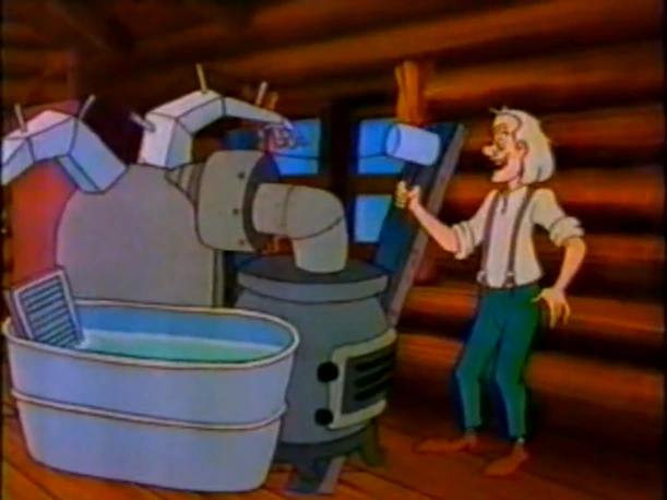 In an attempt to fix the machine, Emmett himself is picked up, submerged into the bathtub and cleaned.