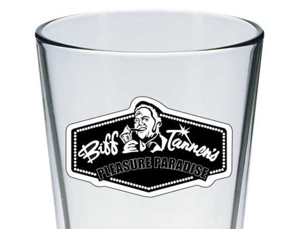 The Biff Tannen Pleasure Paradise Beer Glass.