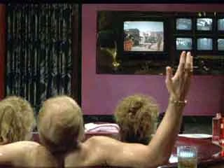 Biff watches A Fistful of Dollars in a hot-tub with two women.