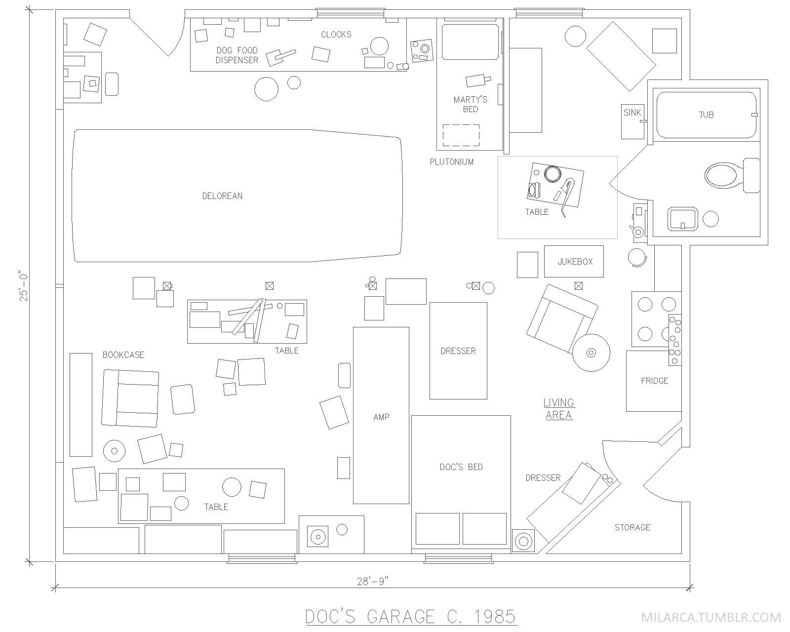 Floor plan of Doc's garage, circa 1985.