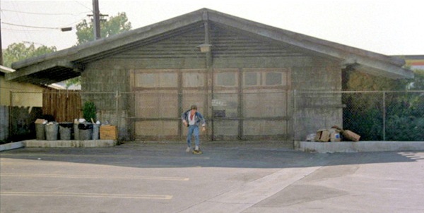 Doc's garage as seen on October 25, 1985. Marty can be seen out front about to ride off on his skateboard.