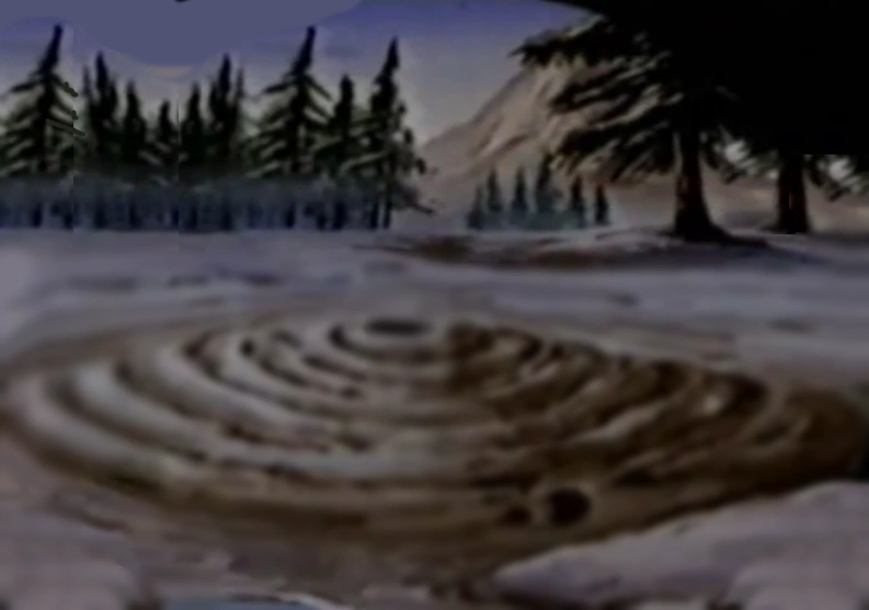 Martha and Verne sat on a buffalo hide, and were lifted up by the Old Faithful geyser. They were then saved by a glider flown by Doc and Daniel Clayton.