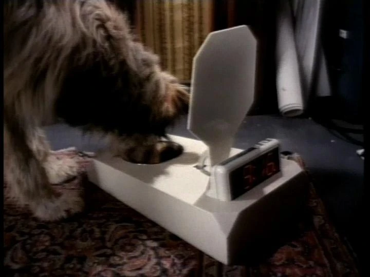The device was probably a later/early evolution of a similar automatic dog feeder Doc had invented in 1985, which was capable of opening and releasing canned dog food into a bowl at a set time.
