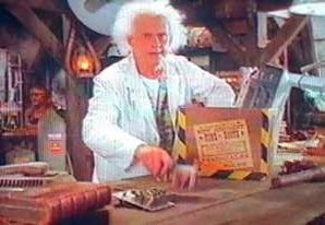 Bill Nye, Dr. Emmett Brown's lab assistant, wore one of these coats, along with a bow tie, in the video encyclopedia files featured in the closing live-action segments of Back to the Future: The Animated Series (1991-92).