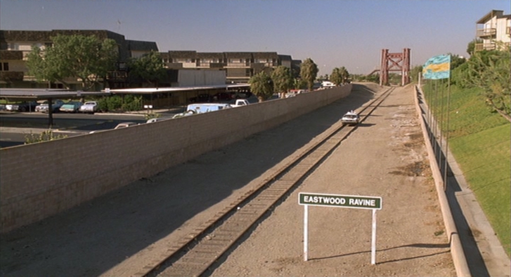 In the 1986G timeline, First Citizen Brown had a secret lab near the ravine (which became Clayton Ravine again). He kept the damaged DeLorean time machine there for safekeeping, but after the events of 1986H, it was known as Eastwood Ravine again.